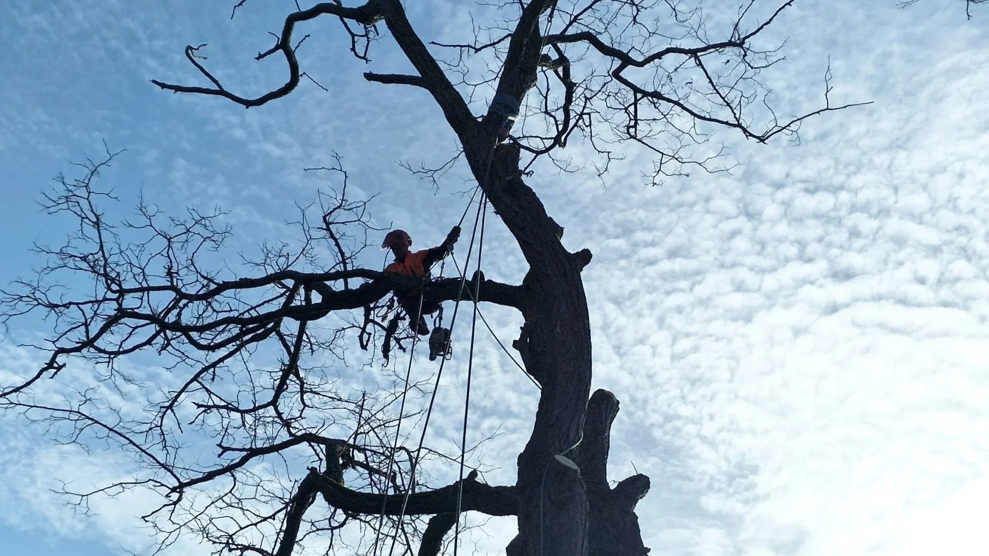 Felling and controlled sectional dismantling of trees.